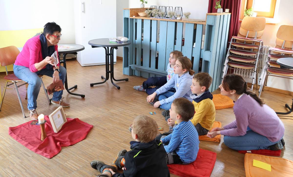 Bei Ursel lauschten die Kinder ihrer anschaulichen Erklärung, welches Glück es ist, Gott nahe zu sein. Jedes Kind bekam als Andenken einen Aufsteller mit dem Spruch aus Psalm 73,28 mit nach Hause.